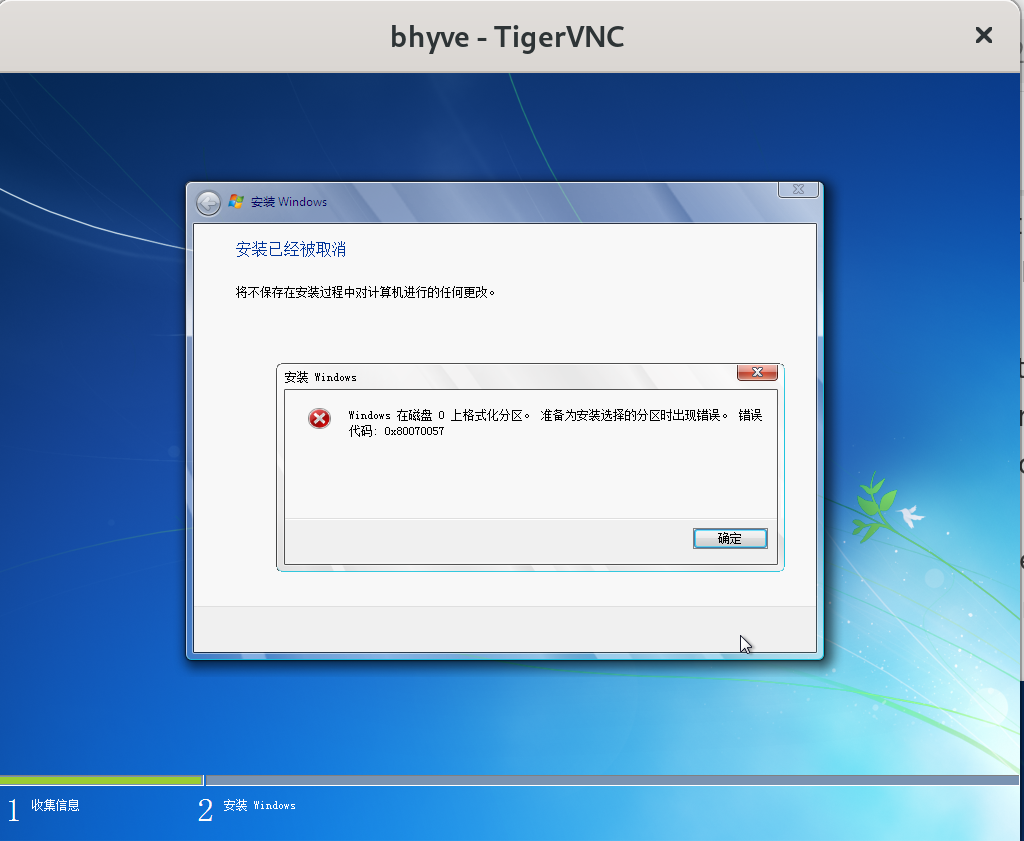 win7 default uefi 2 8G 0.0.0.0:5900 No Running (6779) - 此时你就可以打开刚安装的 TigerVNC Viewer 查看并按常规步骤进行 Windows 7 的安装了。