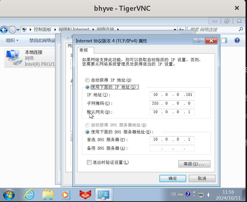 - 安装完毕后在 Windows 7 中打开远程桌面,并将 ip 地址设置为静态地址,如下图: